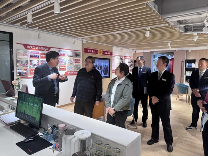 華騰大廈事業部黨支部的黨員同志們抱著潛心學習的心態走入海文大廈。大家首先參觀了海文大廈裝修改造后的房間、公共區域及服務配套場所。在參觀中,海文大廈負責人詳細介紹了大廈在黨建引領下的整體運營情況,重點講解了如何在日常經營中充分發揮黨支部的戰斗堡壘作用和黨員的先鋒模范作用。