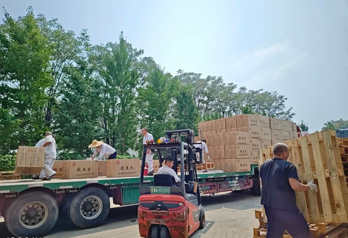 華騰化工立即調(diào)度人力、物力,爭(zhēng)分奪秒組織應(yīng)急物資配送。歷經(jīng)5個(gè)多小時(shí)不間歇備貨、裝載,滿載應(yīng)急物資的4輛大貨車陸續(xù)發(fā)車,前往抗汛一線。
