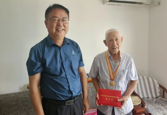北京化工集團黨委高度重視紀念章頒發(fā)工作,黨委書記、董事長陳宇等集團領(lǐng)導(dǎo)帶隊向抗戰(zhàn)老戰(zhàn)士、老同志吳新華、焦鐵、崔震頒發(fā)紀念章,向老戰(zhàn)士、老同志們致以崇高敬意、親切慰問。