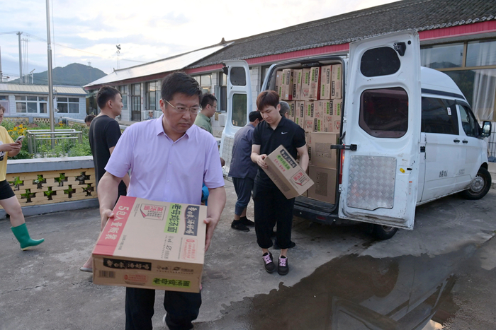7月30日上午,李東又馬不停蹄地組織人員將北京化工集團(tuán)馳援的物資分發(fā)到村民手中。