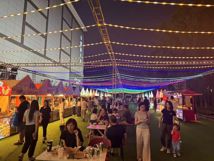自夜市開啟以來,經(jīng)濟效益持續(xù)向好。華騰新天地商場客流量同比大幅增長,親子家庭消費占比超過 60%。夜市中的市集匯聚了美食、潮玩等幾十家商戶,周末更有精彩的節(jié)目演出,現(xiàn)場人氣高漲,成為勁松地區(qū)打卡的熱門地標。
